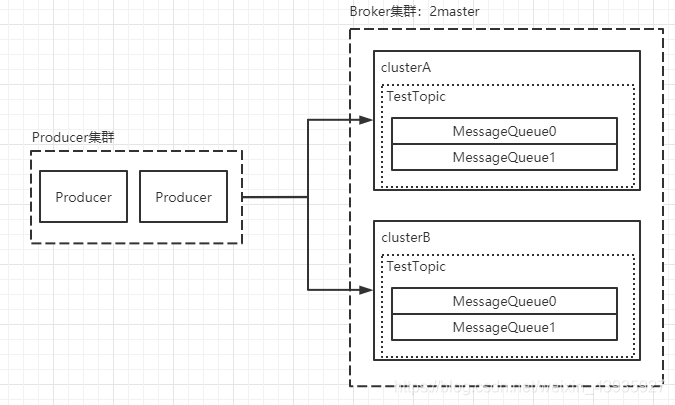 - 为了Producer发来的消息每个master都能写,所以每个Broker上都要有TestTopic主题