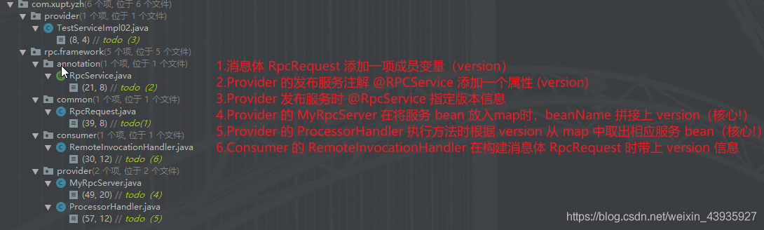- 执行:获取要执行的方法和参数,调用服务实现对象去执行方法。注意,与 version1 的区别就在这里,执行方法时多了一步在 handlerMap 中取出服务 bean。
