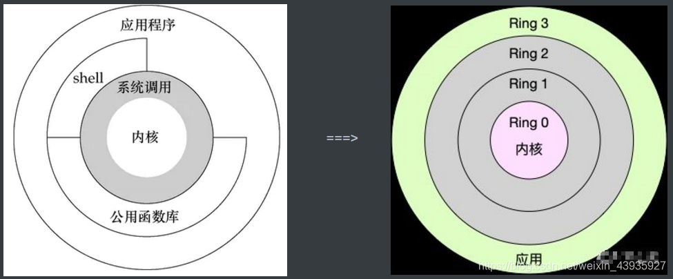 - 用户空间(Ring 3)只能访问受限资源,不能直接访问内存等硬件设备,必须通过系统调用陷入到内核中,才能访问这些特权资源。
