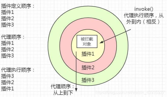 PS:这里其实也可以理解成责任链模式,即多个插件的情况下,为 pluginInterceptors 中的每个插件都成一个代理,然后代理再被代理。其中,创建代理对象的顺序是我们按照我们配置的顺序,而代理方法的执行逻辑则是相反顺序。