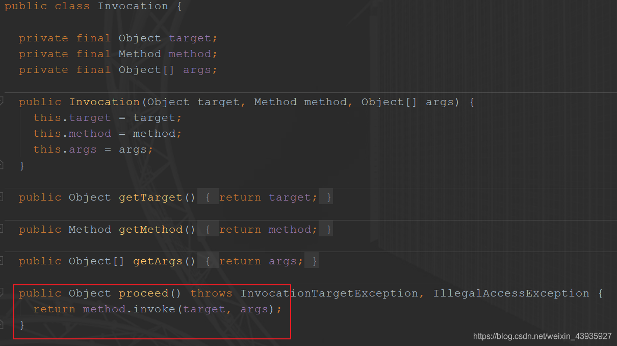 可以从上面看到,在我们每次调用插件的 intercept() 方法时,都会构造一个 Invocation 对象,而这个对象封装了