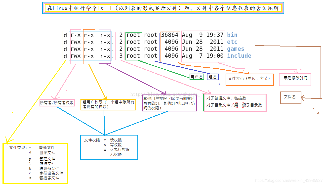 chmod u=rwx,g=rx,o=r 文件名 // 更改文件权限 u=所有者,g=同组,o=other