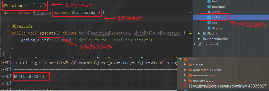 2. 编写简单Mojo类—继承AbstractMojo,并指定goal,然后打包插件。