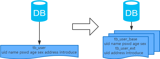 概念:以字段为依据,按照字段的活跃性,将表中字段拆到不同的表(主表和扩展表)中。