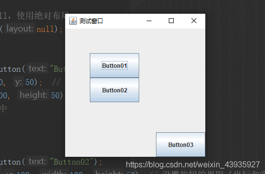 button02.setBounds(50, 100, 100, 50); // 设置按钮的界限(坐标和宽高)