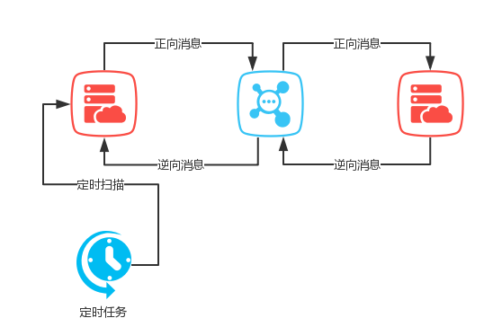 public void doServer(){ // 发送消息 send(); // 执行业务 exec(); // 更新消息状态 updateMsg();}此外,消息队列发生消息后,也可能从业务服务(消费者)宕机而无法消费。绝大多数消息中间件对于这种情况,例如 RabbitMQ、RocketMQ 等引入了 ACK 机制。注意的是,默认的情况下,采用自动应答,这种方式中消息队列会发送消息后立即从消息队列中删除该消息。所以,为了确保消息的可靠投递,我们通过手动 ACK 方式,如果从业务服务(消费者)因宕机等原因没有发送 ACK,消息队列会将消息重新发送,保证消息的可靠性。从业务服务处理完相关业务后通过手动 ACK 通知消息队列,消息队列才从消息队列中删除该持久化消息。那么,消息队列如果一直重试失败而无法投递,就会出现消息主动丢弃的情况,我们需要如何解决呢?聪明的读者可能已经发现,我们在上个步骤中,主业务服务已经将要发送的消息持久化到本地数据库。因此,从业务服务消费成功后,它也会向消息队列发送一个通知消息,此时它是一个消息的生产者。主业务服务(消费者)接收到消息后,最终把本地的持久化消息标志状态为“完成”状态。说到这里,读者应该可以理解到我们使用“正反向消息机制”确保了消息队列可靠事件投递。当然,补偿机制也是必不可少的。定时任务会从数据库扫描在一定时间内未完成的消息并重新投递。