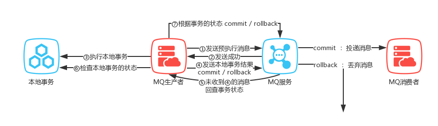 Apache RocketMQ 4.3 版本正式支持分布式事务消息。RocketMQ 事务消息设计主要解决了生产者端的消息发送与本地事务执行的原子性问题,换句话说,如果本地事务执行不成功,则不会进行 MQ 消息推送。那么,聪明的你可能就会存在疑问:我们可以先执行本地事务,执行成功了再发送 MQ 消息,这样不就可以保证事务性的?但是,请你再认真的思考下,如果 MQ 消息发送不成功怎么办呢?事实上,RocketMQ 对此提供一个很好的思路和解决方案。RocketMQ 首先会发送预执行消息到 MQ,并且在发送预执行消息成功后执行本地事务。紧接着,它根据本地事务执行结果进行后续执行逻辑,如果本地事务执行结果是 commit,那么正式投递 MQ 消息,如果本地事务执行结果是 rollback,则 MQ 删除之前投递的预执行消息,不进行投递下发。注意的是,对于异常情况,例如执行本地事务过程中,服务器宕机或者超时,RocketMQ 将会不停的询问其同组的其他生产者端来获取状态。