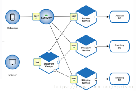 API网关方式的核心要点是,所有的客户端和消费端都通过统一的网关接入微服务,在网关层处理所有的非业务功能。通常,网关也是提供REST/HTTP的访问API。服务端通过API-GW注册和管理服务。