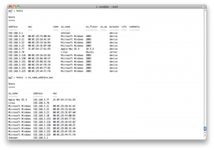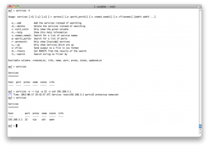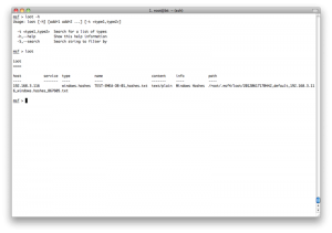 工作空间中有很多的放数据的表,如hosts,service,vulns,loot和notes.可以手动添加数据到表中,比如可以添加一个主机到hosts表中.