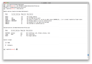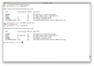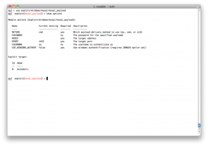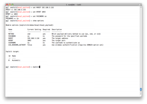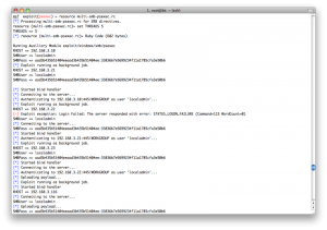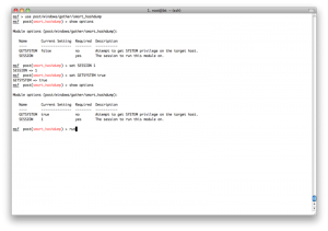 现在我们有了windows系统的本地用户密码.我们可以用psexec exploit,但是那样的话,我们得一个接一个地做.在这个psexec exploit中,只有RHOST参数,没有RHOSTS参数,所以也不能用services表生成一个hosts文件.所以我们需要另一种自动化的方法-resource脚本.
