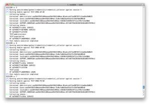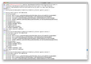 现在我们需要得到更多的hashes,虽然可以手工地进入每一个会话,然后得到hashes.但是我们需要自动化啊.我们可以用一个credential collector模块.这个模块会收集hashes,并且很重要的是它会清理好痕迹和找到domain tokens.不过这个模块还是需要自己动手对每一个session操作以此,除非我们再写一个resource脚本.