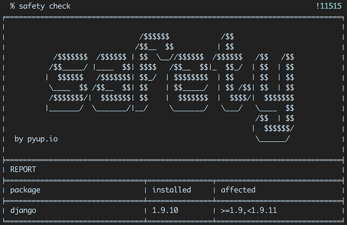 Safety 是 python依赖项检查器,可以扫描本地虚拟环境,需求文件以及 stdin 输入中的安全性问题。