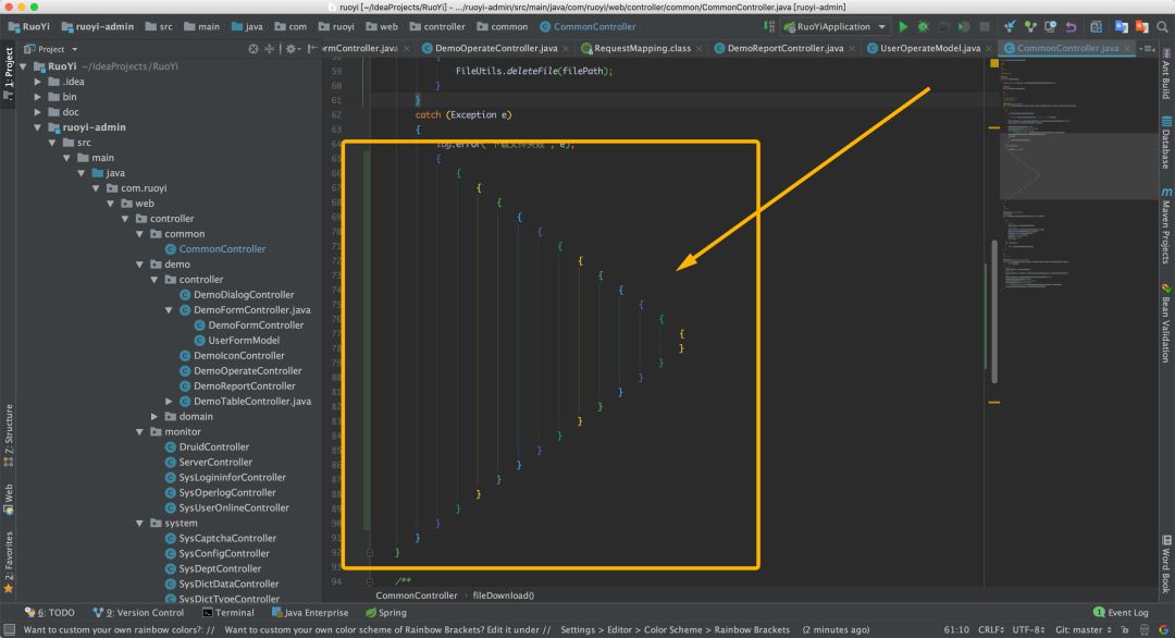 装完插件,括号都被染上了彩虹的颜色: