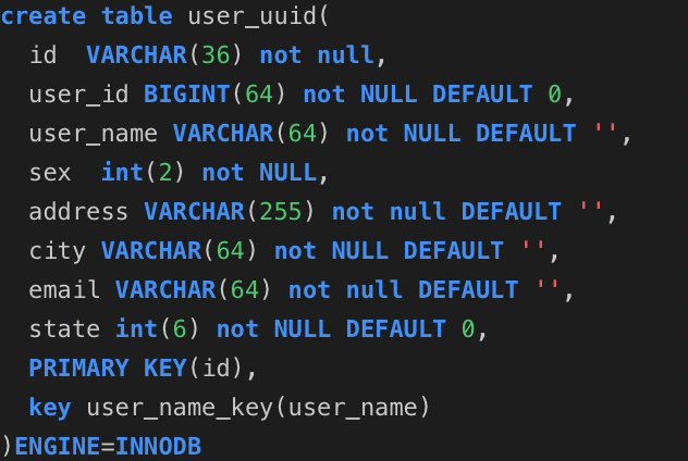 分别是user_auto_key,user_uuid,user_random_key,分别表示自动增长的主键,uuid作为主键,随机key作为主键,其它我们完全保持不变.