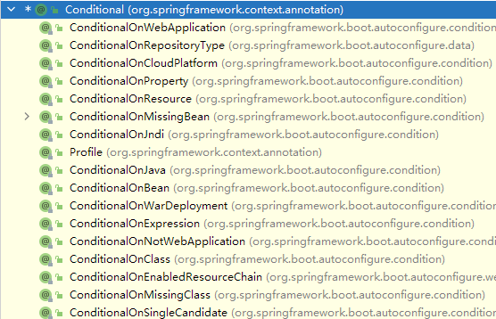 该注解为条件装配注解,大量运用于SpringBoot底层,由该注解衍生出来的注解非常多: