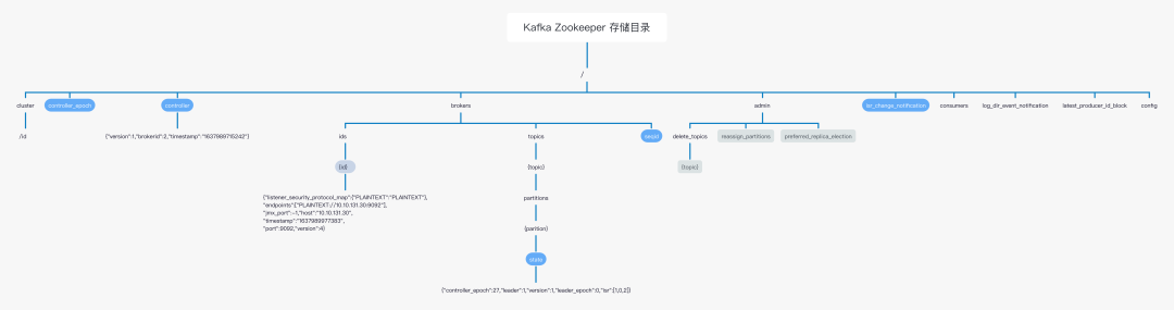 基于Zookeeper停止的法式开发,我们一般能够通过查看zookeeper中的目次规划,能够窥探出哪些功用是依靠Zookeeper完成,Kafka在Zookeeper中的存储目次构造如下图所示: