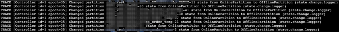 我们找到当前集群的Controler节点,查看state-change.log中,发现如下日记: