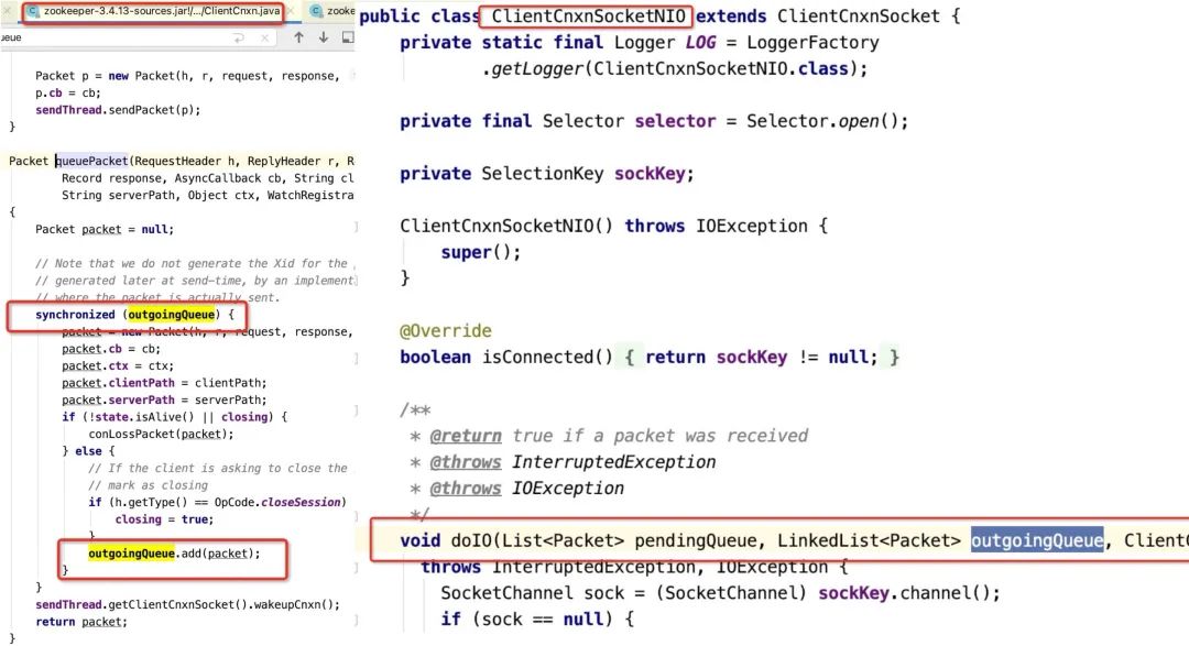 要想一探事实,独一的法子:阅读源码 ,通过研读Zookeeper客户端源码,发现存在如许一个设想:客户端会把所有的恳求先放入一个队列中,然后通过一个发送线程(SendThread)从队列中获取恳求,发送到办事端,关键代码如下: