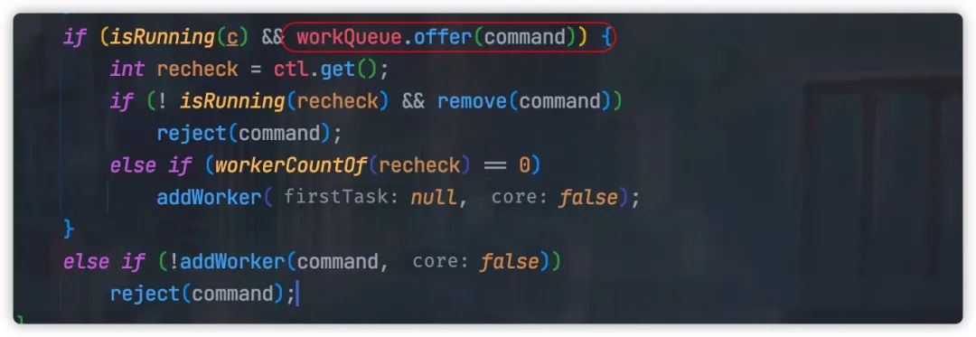 那是因为线程池内部利用 offer 办法,那个办法在队列满载的时候「不会发作阻塞」,而是间接返回 。