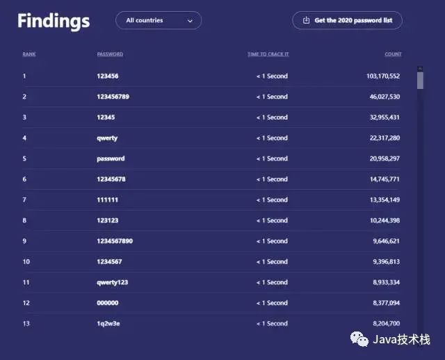 事实上,排名前十的每个密码和排名前五十的所有密码都能够在一秒钟内被破解。