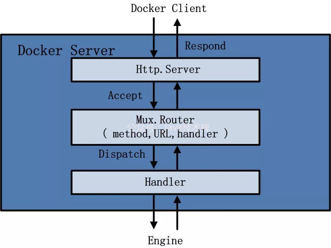 3 创建完 mux.Router 之后,Docker 将 Server 的监听地址以及 mux.Router 做为参数来创建一个 httpSrv=http.Server{},最末施行 httpSrv.Serve() 为恳求办事。