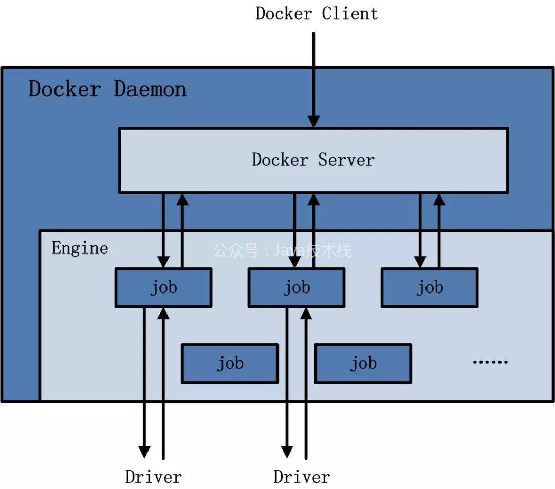 1 一个 Job 能够认为是 Docker 架构中 Docker Engine 内部最根本的工做施行单位。Docker 能够做的每一项工做,都能够笼统为一个 Job。例如:在容器内部运行一个历程,那是一个 Job;创建一个新的容器,那是一个 Job。Docker Server 的运行过程也是一个 Job,名为 ServeApi。