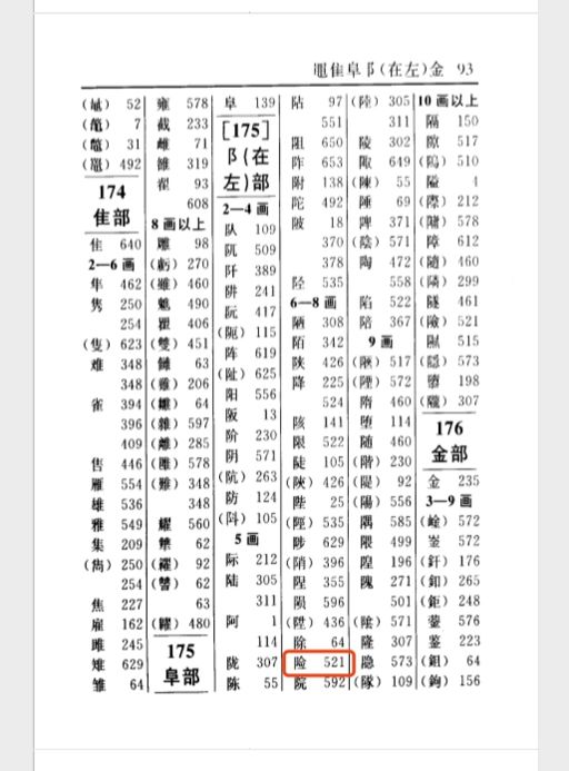 果然,我们在第521页找到了我们要找的“险”字。