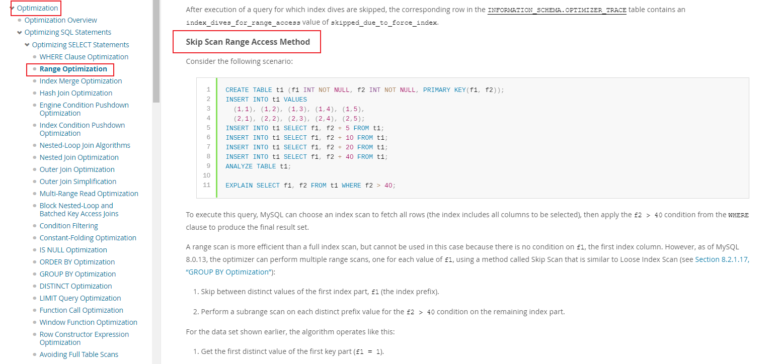 MySQL 官网链接如下:https://dev.mysql.com/doc/refman/8.0/en/range-optimization.html#range-access-skip-scan%EF%BC%89%EF%BC%9A