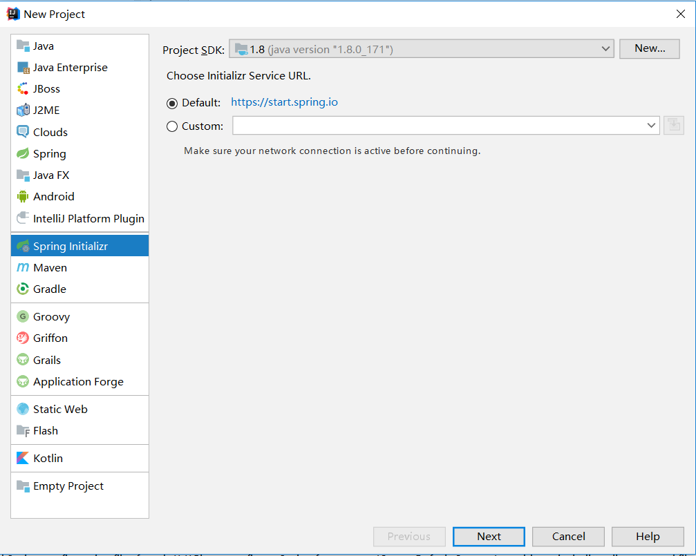 通常只有专业版付费版才默认带有Spring Initialzr功能,如果你的IDEA没有这个选项。可以参照本文末尾《附文:Spring Initializr》
