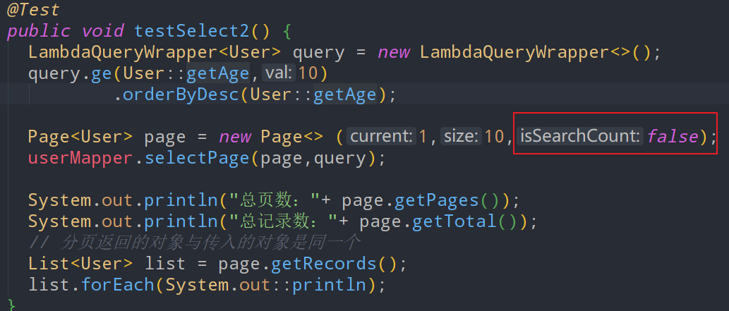 Page<User> page = new Page<> (1,10); //查询第1页,每页10条数据