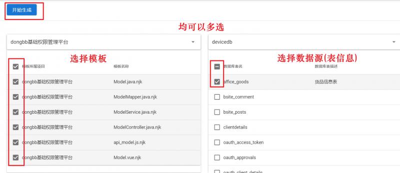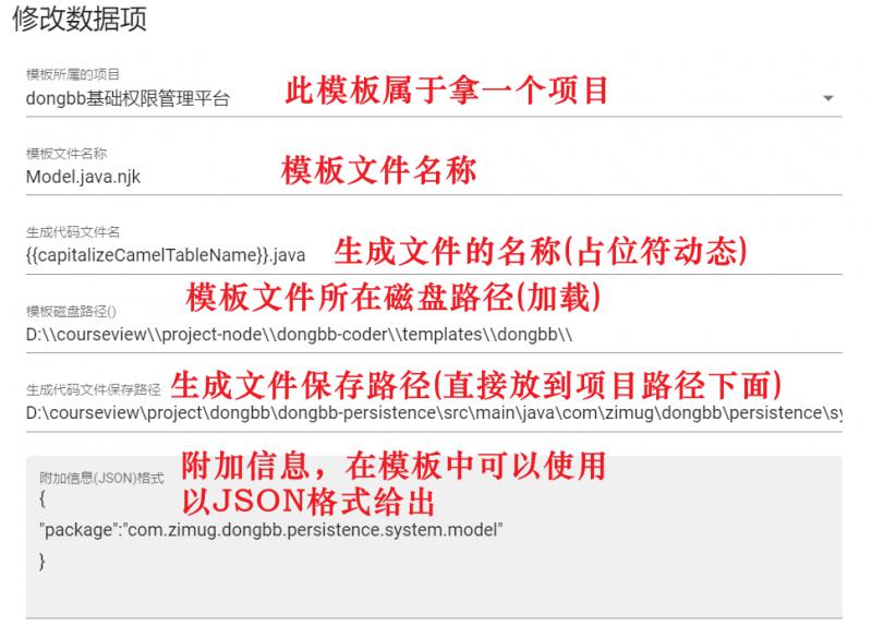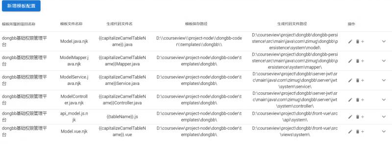 我的这个data.json的配置就是针对dongbb项目的代码生成配置,如果你是使用dongbb项目,这个配置几乎就可以拿来即用了(模板文件路径和代码生成路径需要修改)。