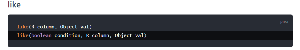 - QueryWrapper是查询条件构造器,like是一种条件构造函数,还有很多的条件构造函数。请参考:条件构造器