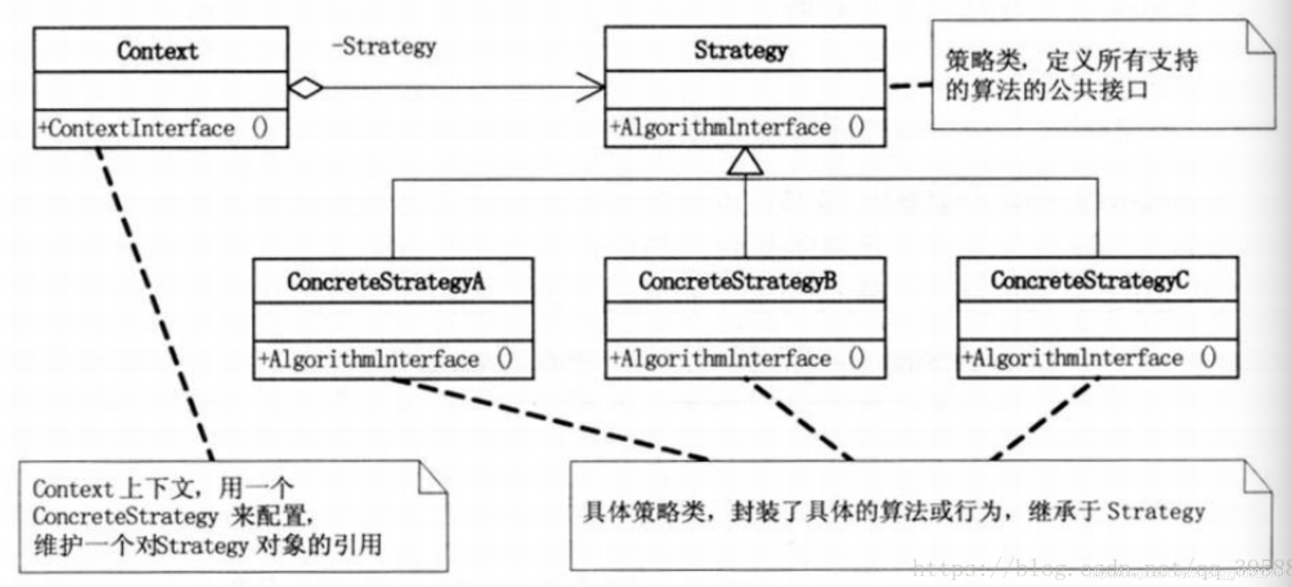 - ConcreteStrategy :各种策略(算法) 的具体实现