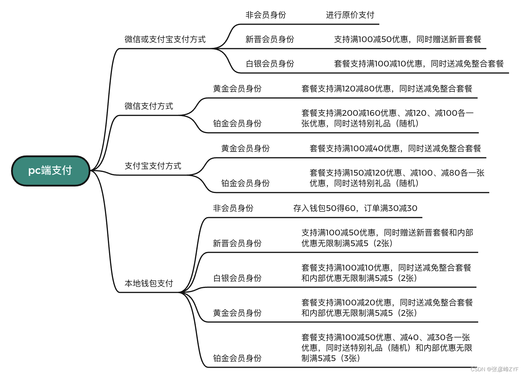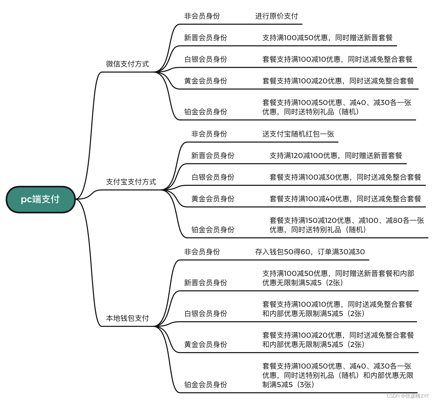 订单来源pc端支付,然后不同支付方式和会员等级有不同策略(交叉有相同)