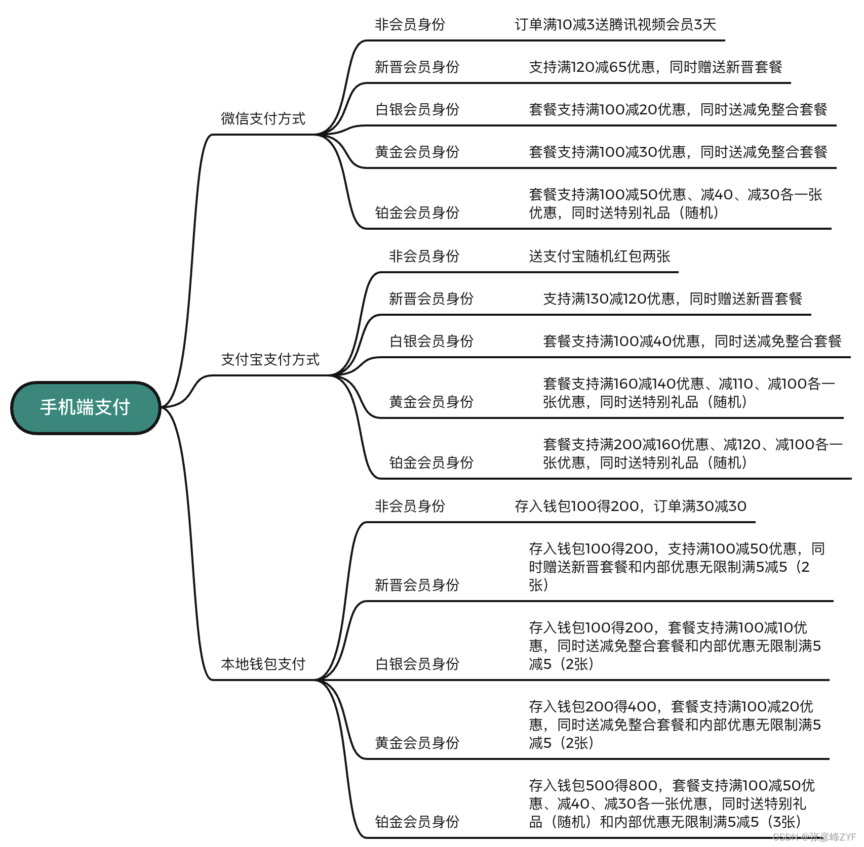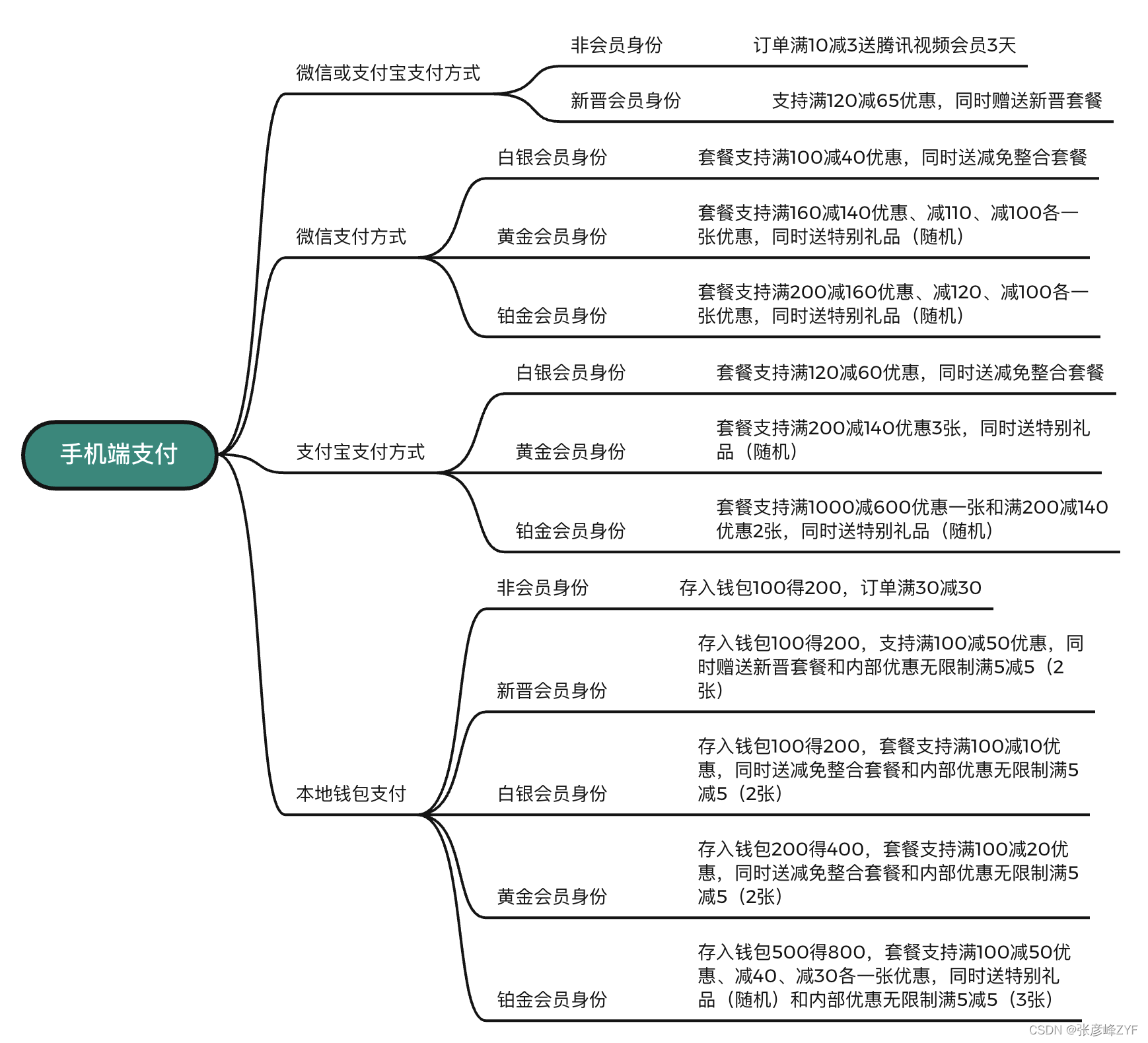 订单来源手机端支付,然后不同支付方式和会员等级有不同策略(交叉有相同)