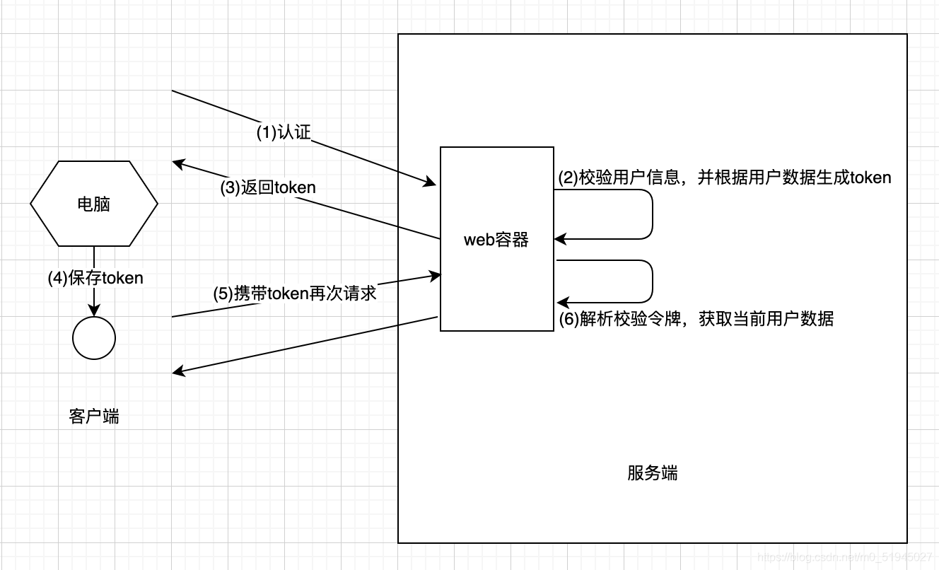 它的交互流程是,用户认证成功后,服务端生成一个token发给客户端,客户端可以放到cookie或localstorage等存储中,每次请求时带上token,服务端收到token通过验证后即可确认用户身份。