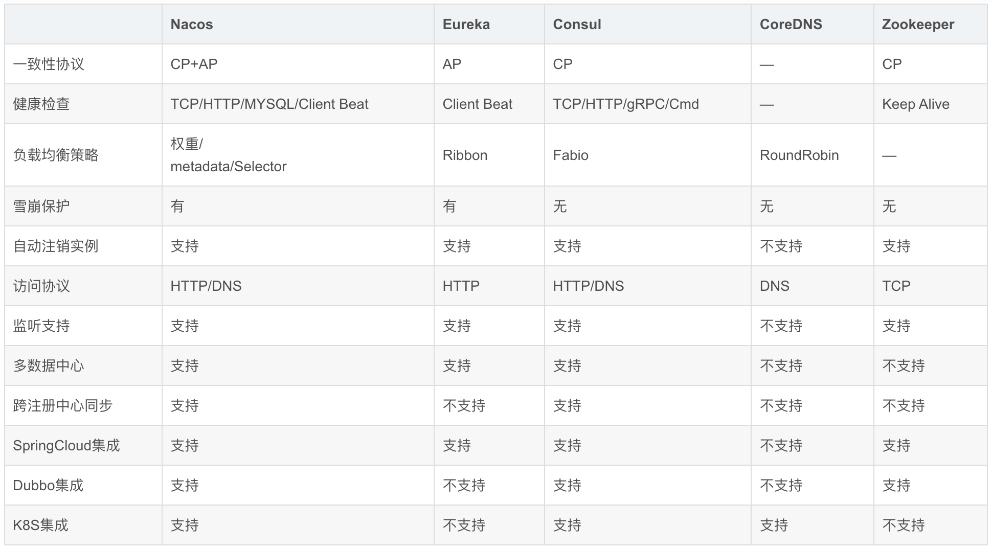 目前市面上用的比较多的服务发现中心有:Nacos、Eureka、Consul和Zookeeper。