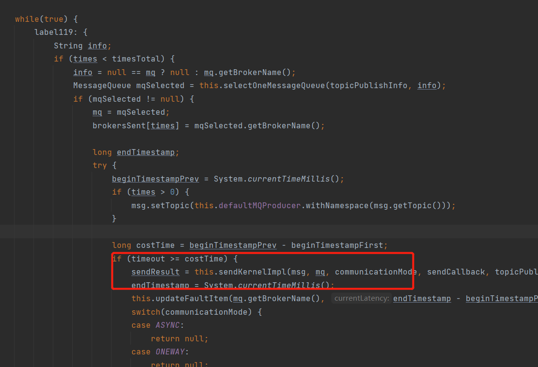 调用的是mqFaultStrategy的选择队列的方法,这个是MQ负载均衡的核心类。