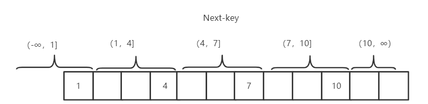 比如我们使用 >5 <9,它包含了记录不存在的区间,也包含了一个Record 7。