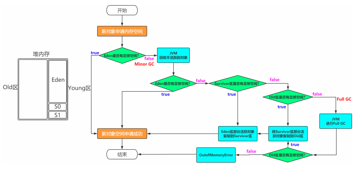 - Young区分为两大块,一个是Survivor区(S0+S1),一块是Eden区