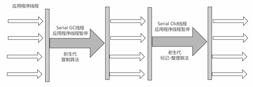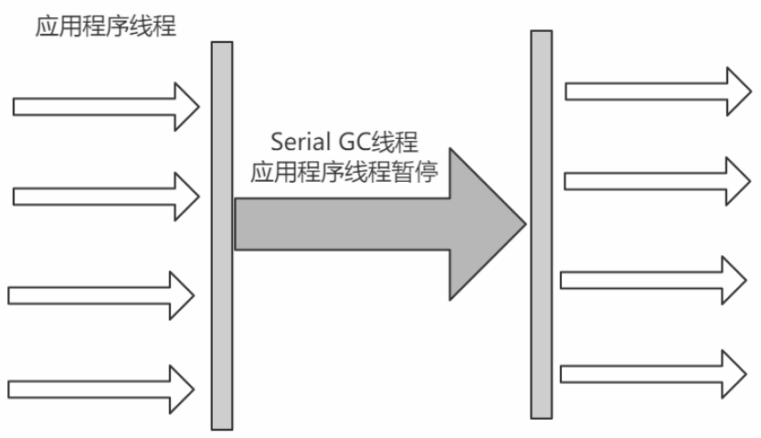只能有一个垃圾回收线程执行,用户线程暂停。