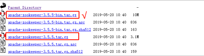 记一个坑:zookeeper的3.5.5—>3.6.0这几个版本,在下载的时候你会发现它有-bin.tar.gz和tar.gz两个版本,我们一般自然而然的就下载了tar.gz,这是个坑,这几个版本的tar.gz是源码包,里面没有jar包,我们要下载-bin.tar.gz才能正确安装。
