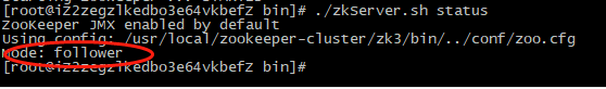 # cd /usr/local/zookeeper-cluster/zk3/bin/