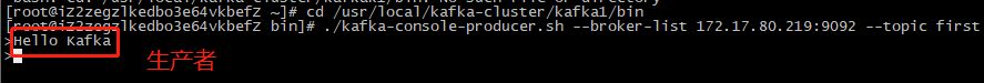 # ./kafka-console-producer.sh --broker-list 172.17.80.219:9092 --topic first