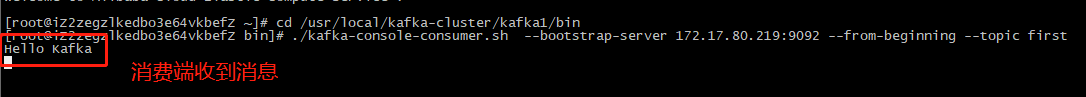 # ./kafka-console-consumer.sh --bootstrap-server 172.17.80.219:9092 --from-beginning --topic first