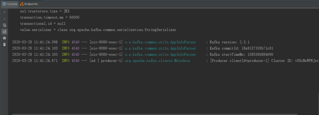 spring.kafka.producer.value-serializer=org.apache.kafka.common.serialization.StringSerializer