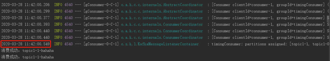 // "timingConsumer"是@KafkaListener注解后面设置的监听器ID,标识这个监听器