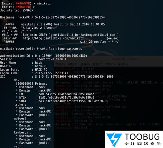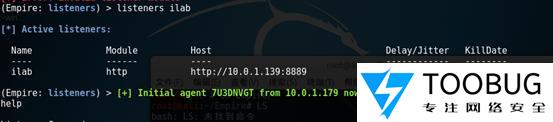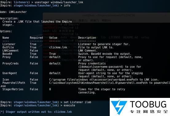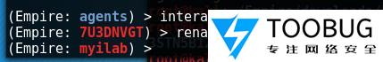 在攻击上运行 link 文件,然后就会创建一个 agent,Empire 中的 agent 和 Metaslpoit 中 seeion类似。