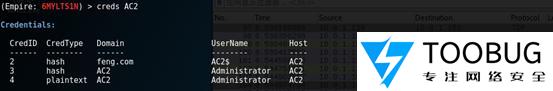 如果你想要过滤结果也可以使用 creds AC2 来过滤信息