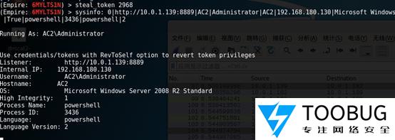 获取到简单的信息之后我们要通过 IP 地址判断域控,如果域控登录过我们所控制的电脑,那么继续采用上面的提权方法,采用进程注入获取域控权限。如果没有登录过,那么我们可以使用 msf 联动,获取域控信息采用最新漏洞或者其他方法来获取域控权限,最后进行横向移动。